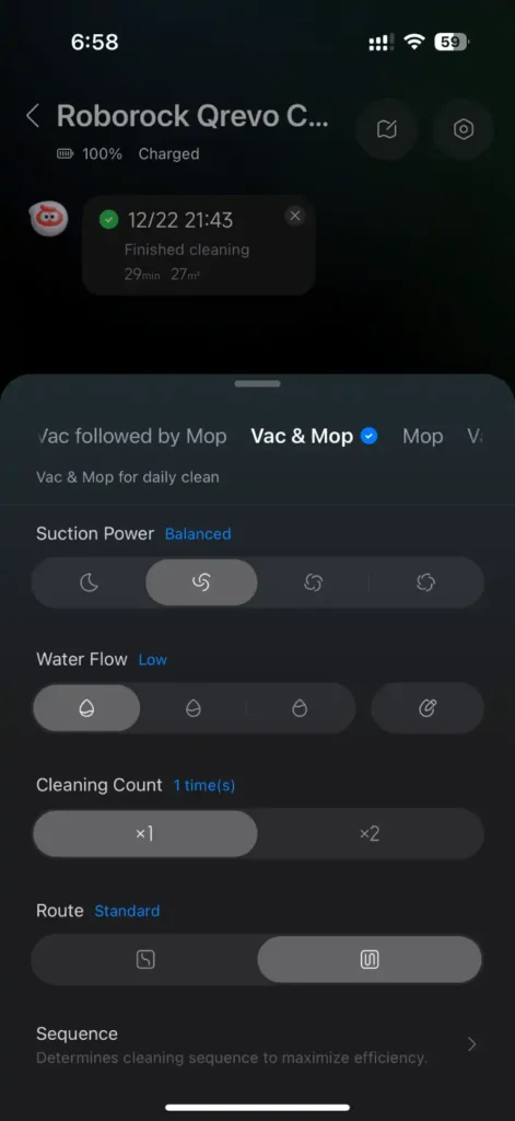 One of my favorite features is the Roborock App’s extensive customization options. You can design personalized cleaning setups and save them as Custom Routines, which can be triggered with a single tap.
