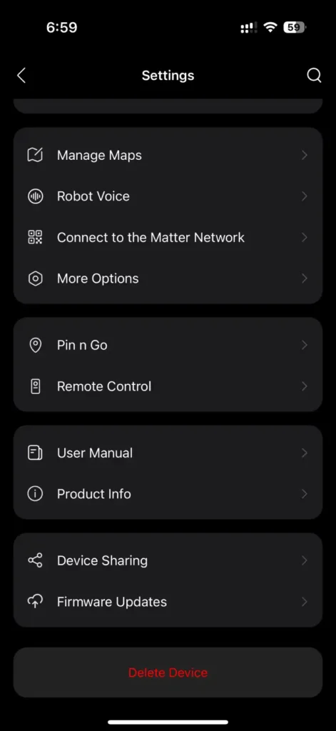 The Roborock App also provides a convenient option to disconnect the device from all Matter ecosystems.